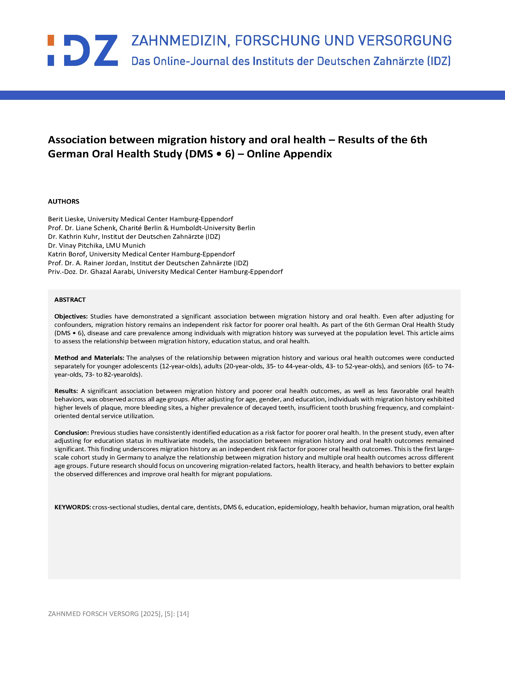 - Ergebnisse für spezielle Bevölkerungsgruppen (z. B. Seniorenzahnmedizin)