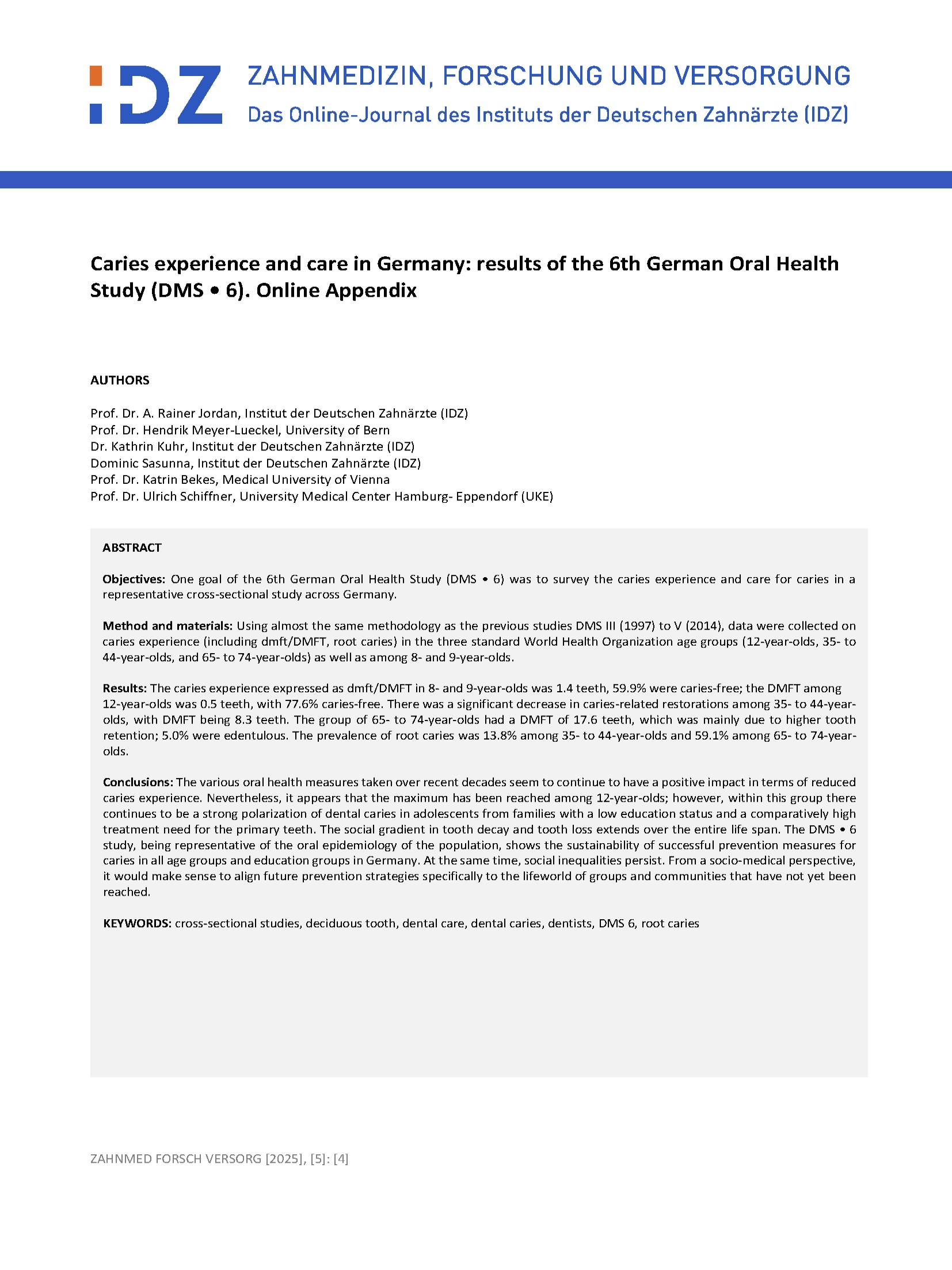 - Überblick über die wichtigsten Ergebnisse der 6. Deutschen Mundgesundheitsstudie (DMS • 6)